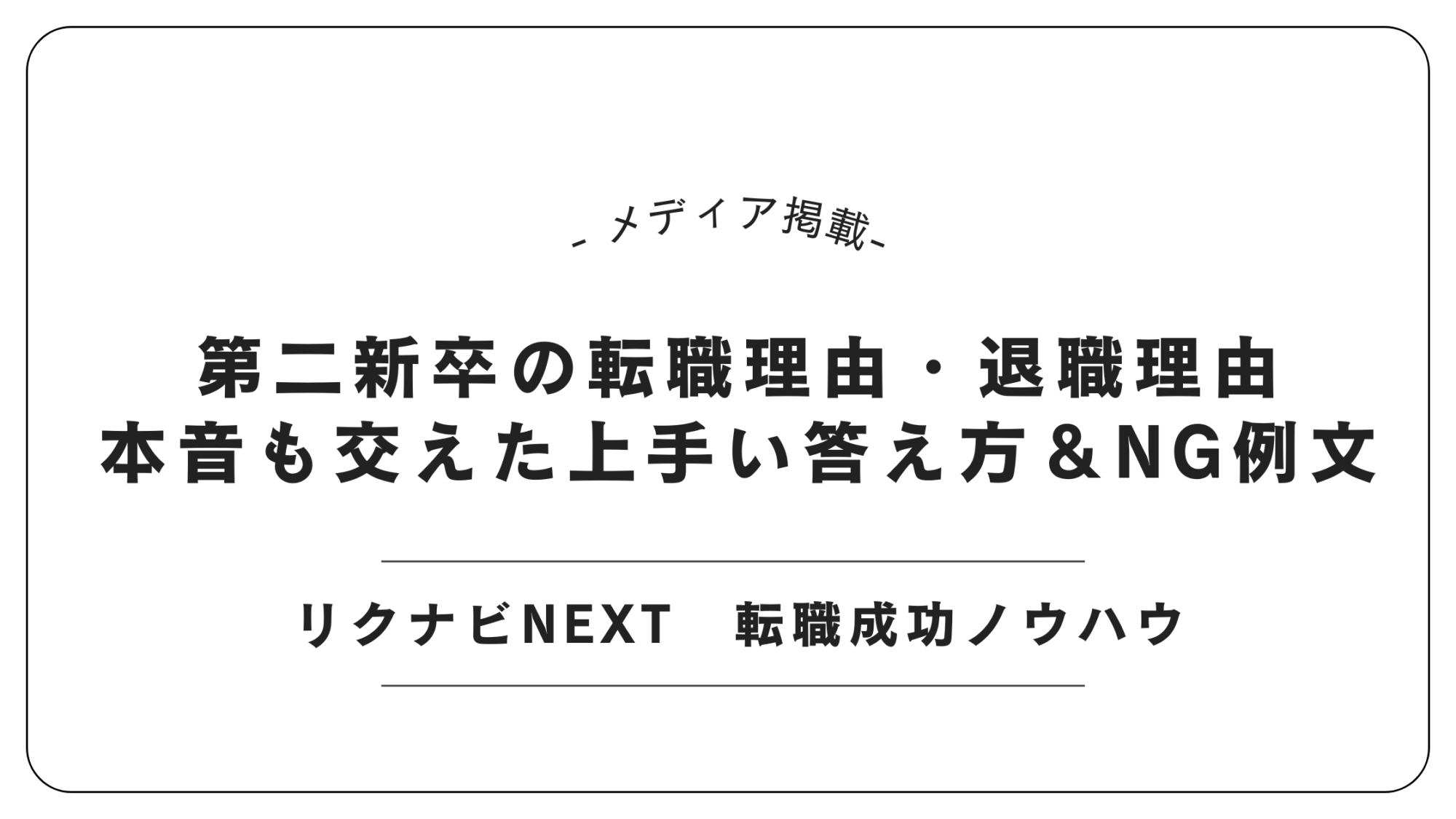 【メディア掲載】リクナビNEXTにて「第二新卒の転職理由の伝え方」記事を監修しました