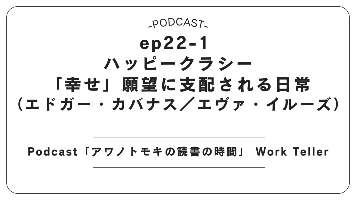 Podcast「アワノトモキの読書の時間」 Work Teller ep22-1「ハッピークラシー ― 「幸せ」願望に支配される日常」(エドガー・カバナス/エヴァ・イルーズ)
