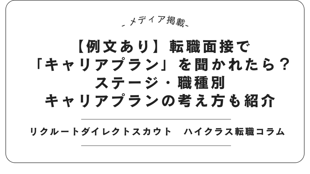 - 記事タイトル:【例文あり】転職面接で「キャリアプラン」を聞かれたら?ステージ・職種別キャリアプランの考え方も紹介