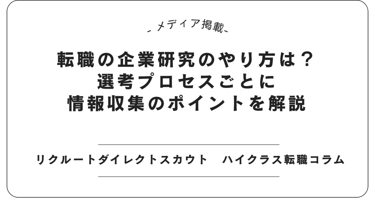 - 記事タイトル:転職の企業研究のやり方は?選考プロセスごとに情報収集のポイントを解説
