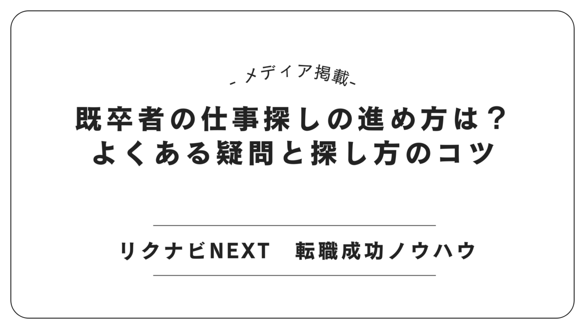 - 記事タイトル:既卒者の仕事探しの進め方は?よくある疑問と探し方のコツ