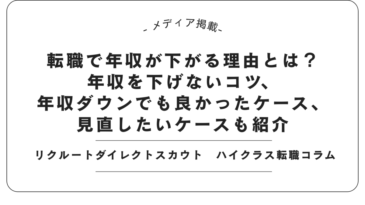 このたび、リクルートダイレクトスカウト「ハイクラス転職コラム」に掲載された