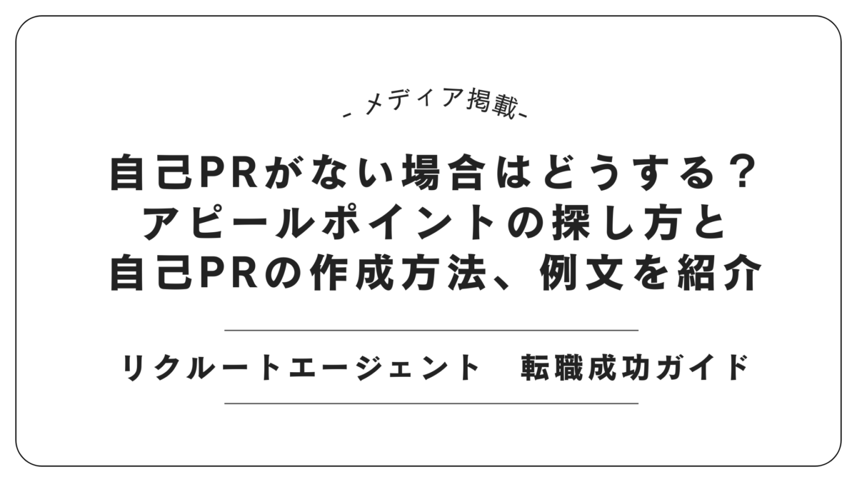 自己PRがない場合はどうする?アピールポイントの探し方と自己PRの作成方法、例文を紹介 | リクルートエー…