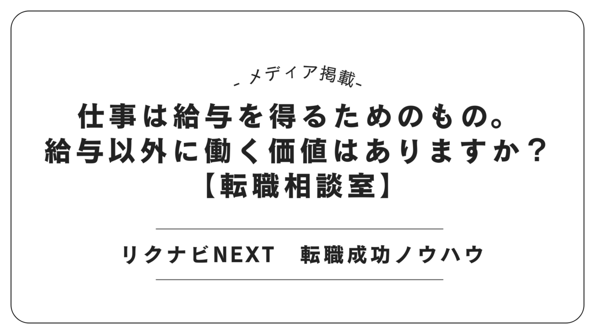 - 記事タイトル:仕事は給与を得るためのもの。給与以外に働く価値はありますか?【転職相談室】